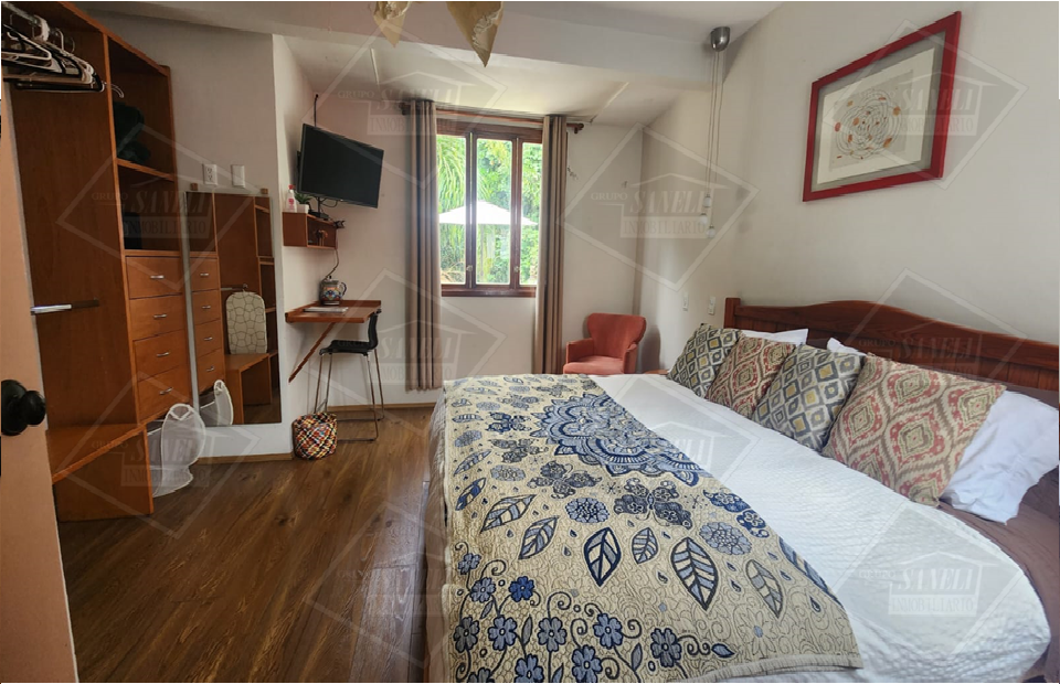 Planta alta: 4 habitaciones cada una con baño propio , sala de espera,un departamento independiente con una recamara, 1 baño, cocina y patio.
