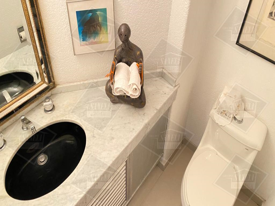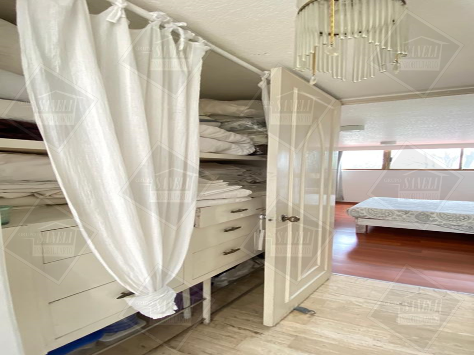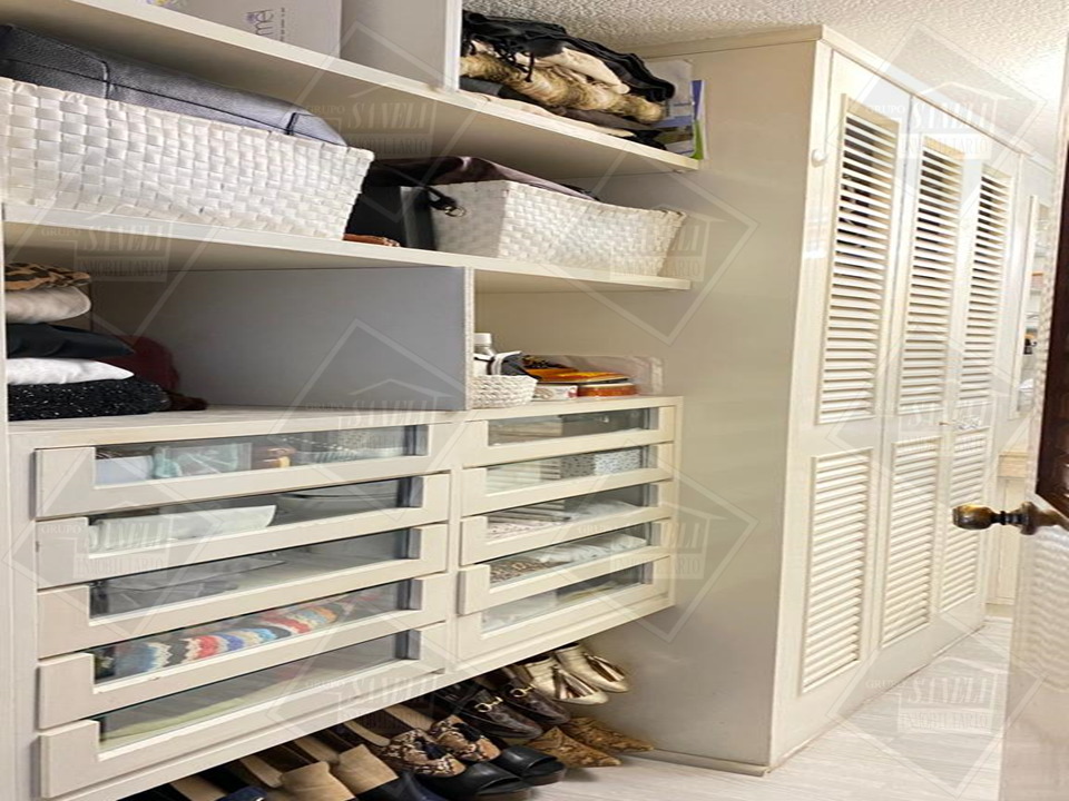 Cuenta con 3 recamaras cada una con su baño, 2 vestidores bastante amplios, un estudio, amplia terraza social, sala comedor , cocina, medio baño, bodega, área de lavado, cuarto de servicio, salón de usos múltiples, cuarto de blancos, 2 lugares de estacionamiento, con las cercania de av principales como av de las palmas y av de las fuentes, escuelas, tiendas de autoservicio, servicios médicos e iglesias a pocos metros