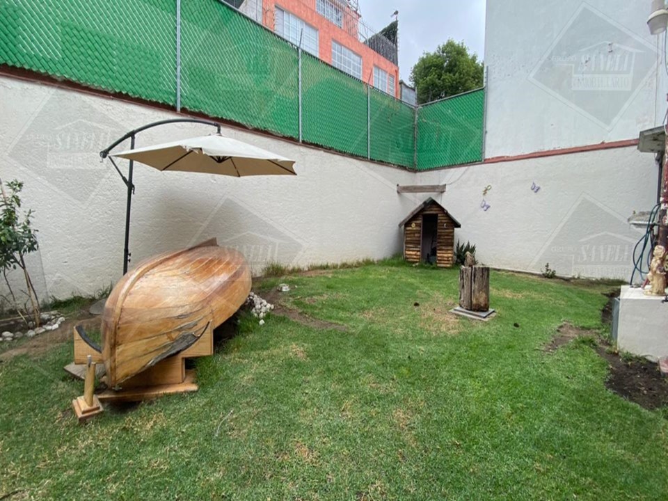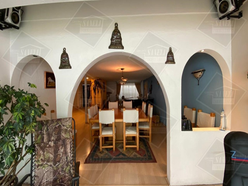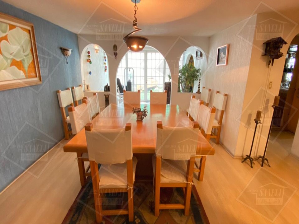 PLANTA BAJA: SALA COMEDOR, HALL, 1/2 BAÑO, COCINA INTEGRAL MUY AMPLIA CON AREA PARA DESAYUNADOR, CANTINA, JARDIN DE 100 M2, 2 BODEGAS CHICAS, SALA PARA LECTURA, CHIMENEA A GAS, ENTRADA DE SERVICIO INDEPENDIENTE, GARAGE PARA 3 AUTOS GRANDES.