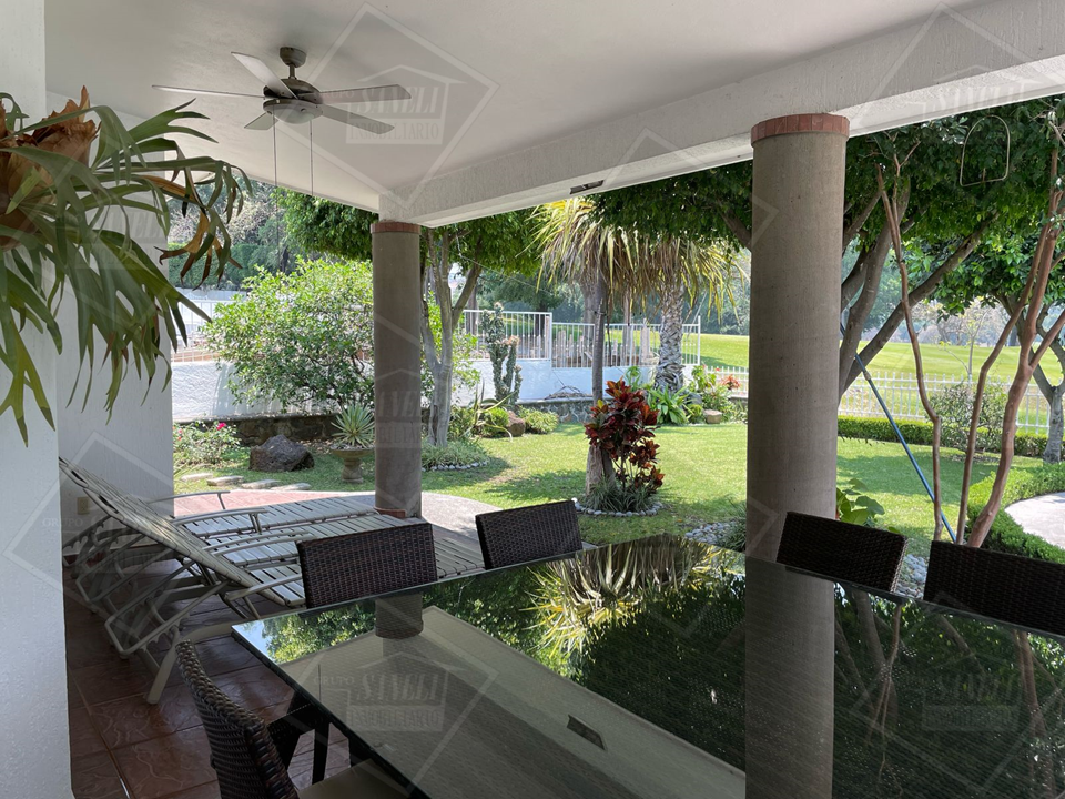 CASA DE UN SOLO PISO CON VISTA AL CAMPO DE GOLF,COCINA EQUIPADA MUY AMPLIA CON AREA PARA DESAYUNADOR,ESTANCIA SALA COMEDOR CON VENTANALES, MUCHA LUZ PROPIA,4 RECAMARAS CON CLOSET DE TECHO A PISO,3 BAÑOS COMPLETOS TODOS CON CANCELES DE CRISTAL, TERRAZA , PALAPA LINDO JARDIN DONDE ENCONTRARAS TRANQUILIDAD,ALBERCA CON PANELES SOLARES PARA CONVIVIR EN FAMILIA,CISTERNA DE 17,000LTS,ESTACIONAMIENTO CUBIERTO PARA 2 AUTOS,VIGILANCIA 24HRS,ACESSO CONTROLADO